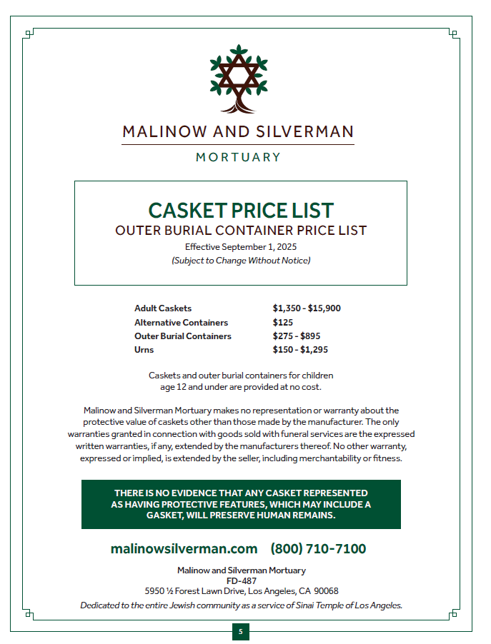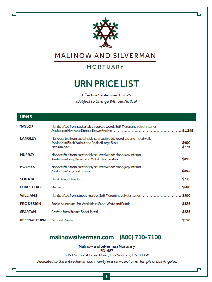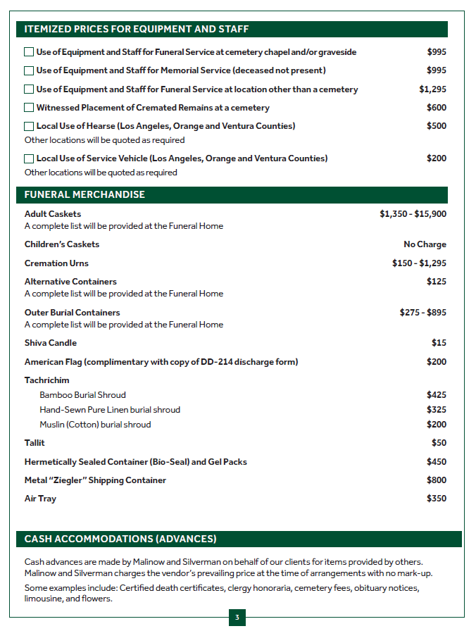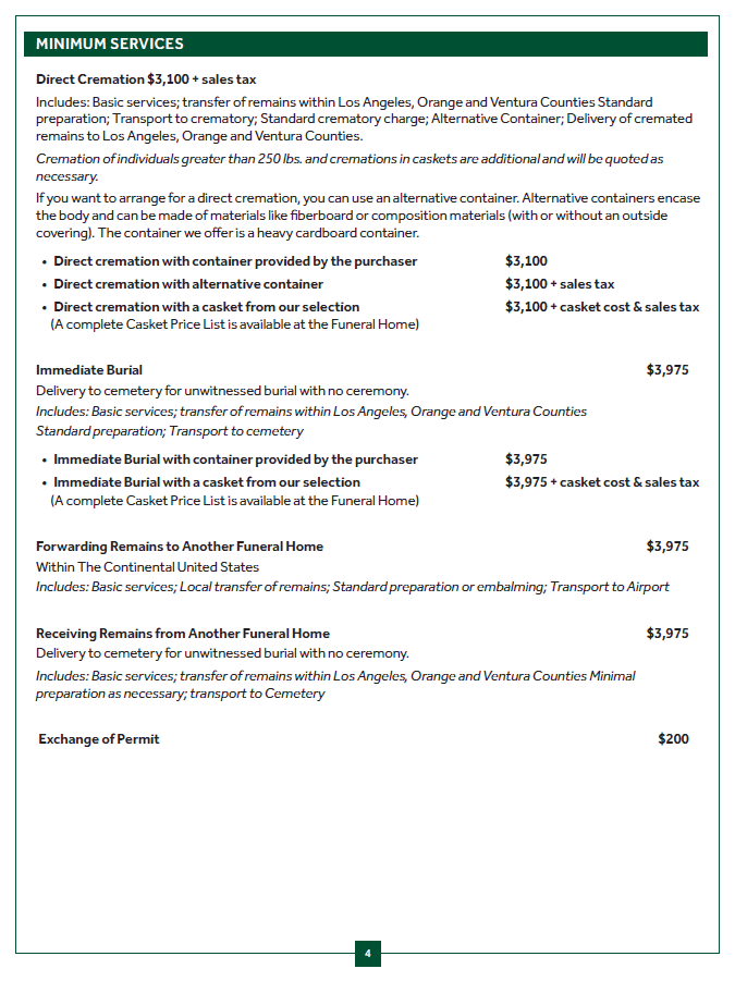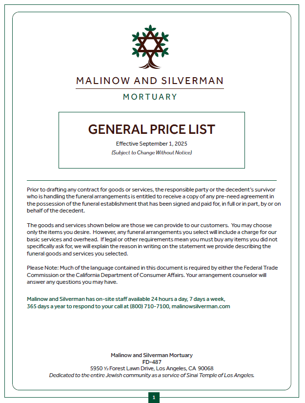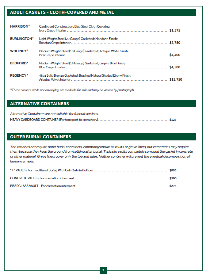 This section contains our complete General and Casket Price List. If you require additional information then what is provided here, please contact us at anytime.